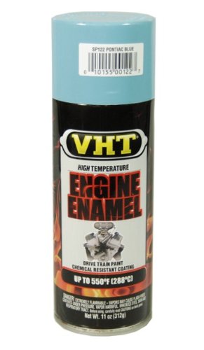 VHT SP122 Pontiac Blue High Temp (500 degrees Fahrenheit) Engine Enamel has excellent durability and superior heat and chemical resistance. It is specially formulated to withstand corrosion, rust, salt spray, chemicals and additives of today's gasoline blends and degreasers. VHT's 550 degree engine enamel is a unique blend of urethane and ceramic resins, which produce a long-lasting finish for engines, engine accessories or wherever a tough durable heat and chemical resistant finish is needed. VHT SP122 is part of a multi high performance coating system for the ultimate protection and quality. The coating system consists of surface prep, strip fast, engine primer, engine color, and engine clear. VHT engine enamel dries to the touch in 30 minutes and completely over night. VHT engine enamel only attains its unique qualities after correct curing. Curing occurs with normal engine operating temperatures or parts can be heated to 200 degrees Fahrenheit. Complete application and curing process instructions are also printed on each can.